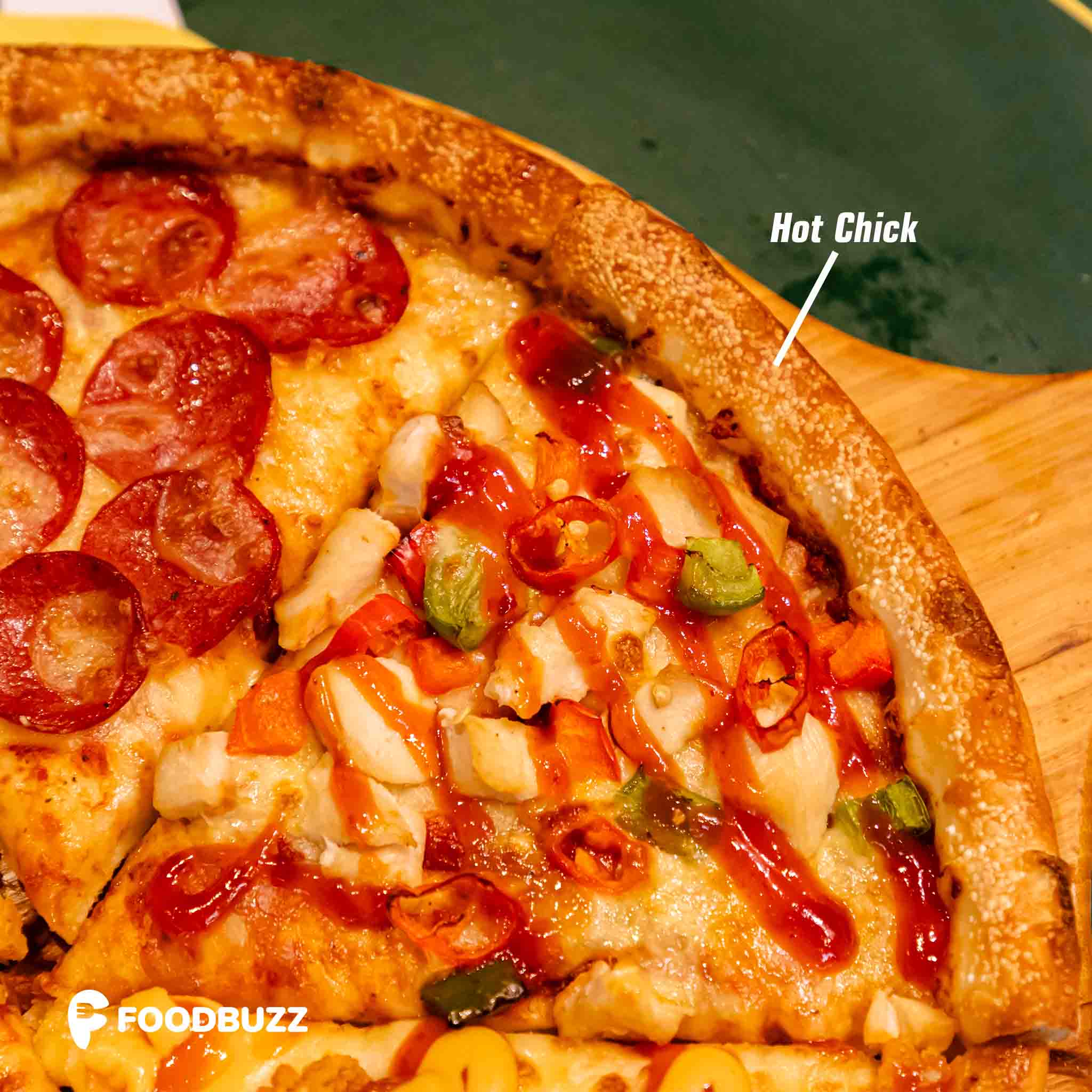 The hints are already in the name. It is made with spicy shredded chicken, special chili sauce, red chilies, green & red pepper, roasted garlic, and Mozzarella cheese. If you are into chicken and spicy taste, try this out!