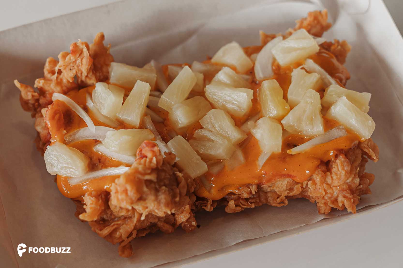 ណែនាំមុខម្ហូបថ្មីរបស់ KFC ដែលមានឈ្មោះថា Chizza រសជាតិប្លែកមិនធ្លាប់មានពីមុនមក។ គ្រាន់តែឮឈ្មោះ Chizza ស្មានថាជាភីហ្សាសាច់មាន់មែនទេ? ខុសហើយ! តាមពិតទៅ Chizza ជាបន្ទះសាច់មាន់បំពងស្រួយៗ គ្មានឆ្អឹងមួយដុំដែលស្រោចដោយ Pizza Sauce, Jalapeno Cheese និងរោយចំណិតម្នាស់ហើយខ្ទឹមបារាំងតូចៗពីលើ។ Chizza មានរសជាតិប្លែកឆ្ងាញ់ ជាការច្នៃឡើងមាន នៅ KFC តែមួយគត់។