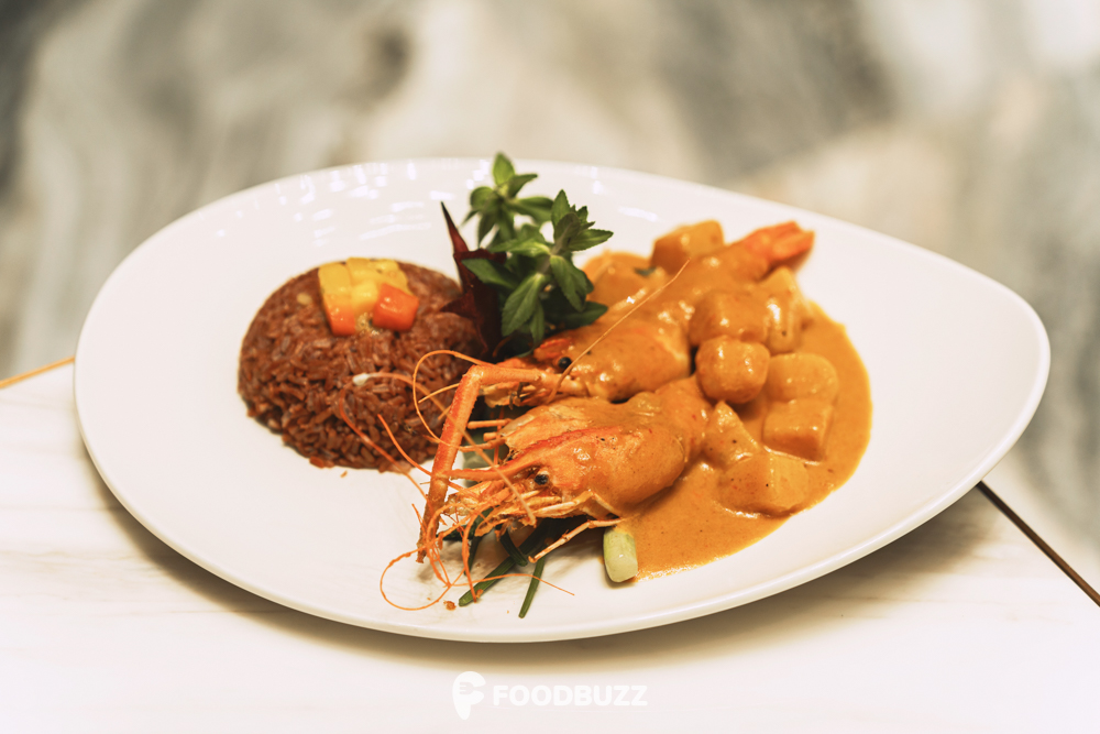 ចានទី 2 នេះក៏ពិសេសដែរ ទទួលបាននូវអារម្មណ៍ស្រលះល្អពេលដែលបានញុាំមួយម៉ាត់ចូលមាត់ ជាមួយម្ហូបបែបខ្មែរ ការីដូងតាកែវជាមួយបង្កយក្ស (Takeo Coconut King Prawn Curry)។ មួយមុខនេះជាប្រភេទអាហារសុខភាព ដែលរសជាតិធ្វើឡើងតម្រូវសម្រាប់ភ្ញៀវជាតិនិង អន្តរជាតិ ដោយមានរសជាតិល្មម មិនផ្អែមពេក និងមិនធ្វើឲ្យយើងត្រលាន់ឡើយត្រូវម៉ាច់ជាមួយបាយអង្ករសម្រូបដែលបានដាក់ជូនក្នុងចានម្ហូបនេះ។ អេដមីនធានាថា មួយមុខនេះញុាំមួយម៉ាត់ហើយចង់ញុាំទៀតហ្មង ដោយសាច់បង្កងខាំរសជាតិជាប់ល្អជាមួយនឹង សសទឹកការី (Curry Sauce)។ ញុាំតែបង្កងអត់ទាន់គ្រប់ទេ អុីចឹងទាល់តែបន្ថែមជាមួយដំឡូងដែលភ្ជាប់ជាមួយការីទៀត ។