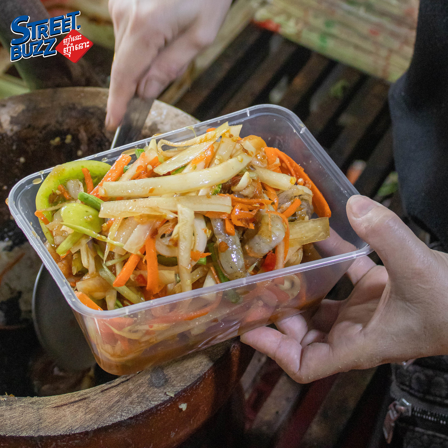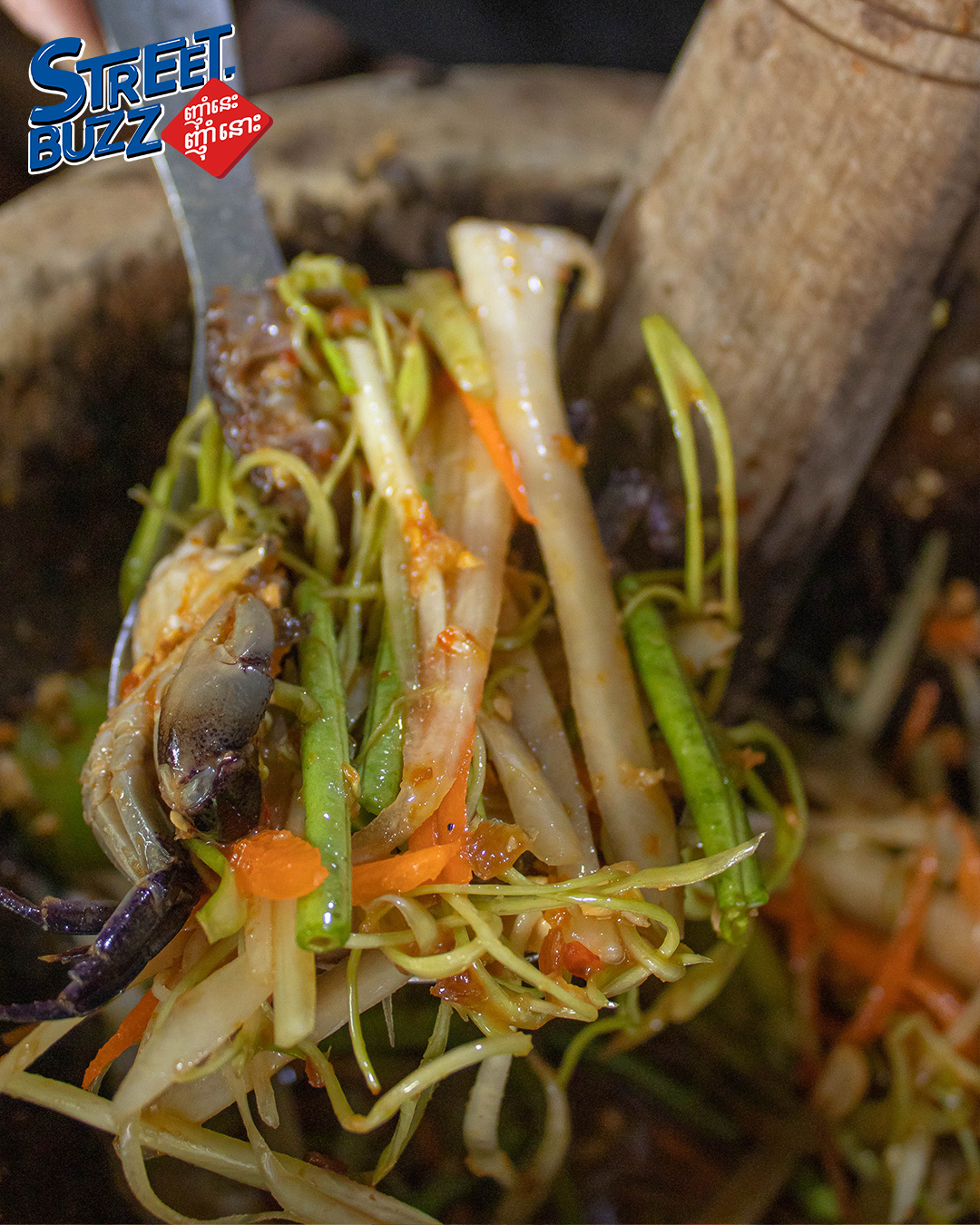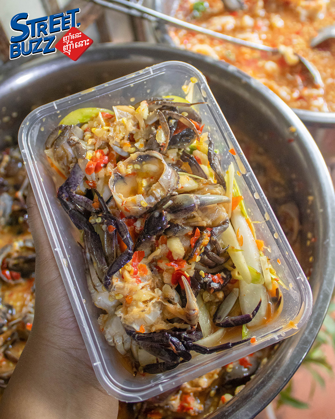 When you get to her shop, which is located near Beoung Keng Kang Market, you’ll find a wide selection of dishes available. The shop’s customers enjoy the Pickled Salty Field Crabs, Pickled Chicken Feet, and Pickled Duck Feet the most because the unforgettable flavors are savory, sweet, sour, and spicy.