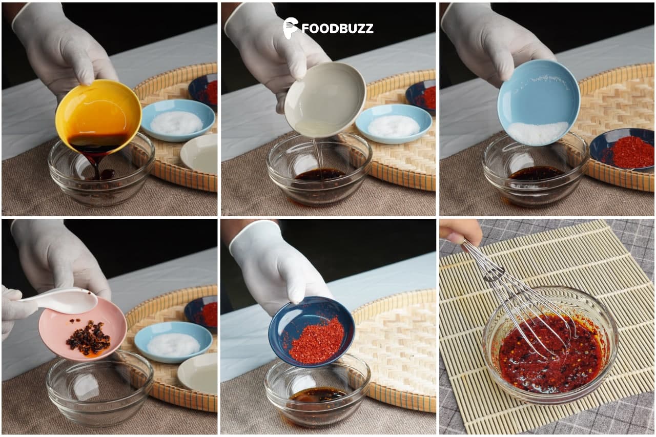 ១. លាយទឹក Sauce សម្រាប់លាយបាយដោយលាយទឹកសុីអុីវ ស្ករ