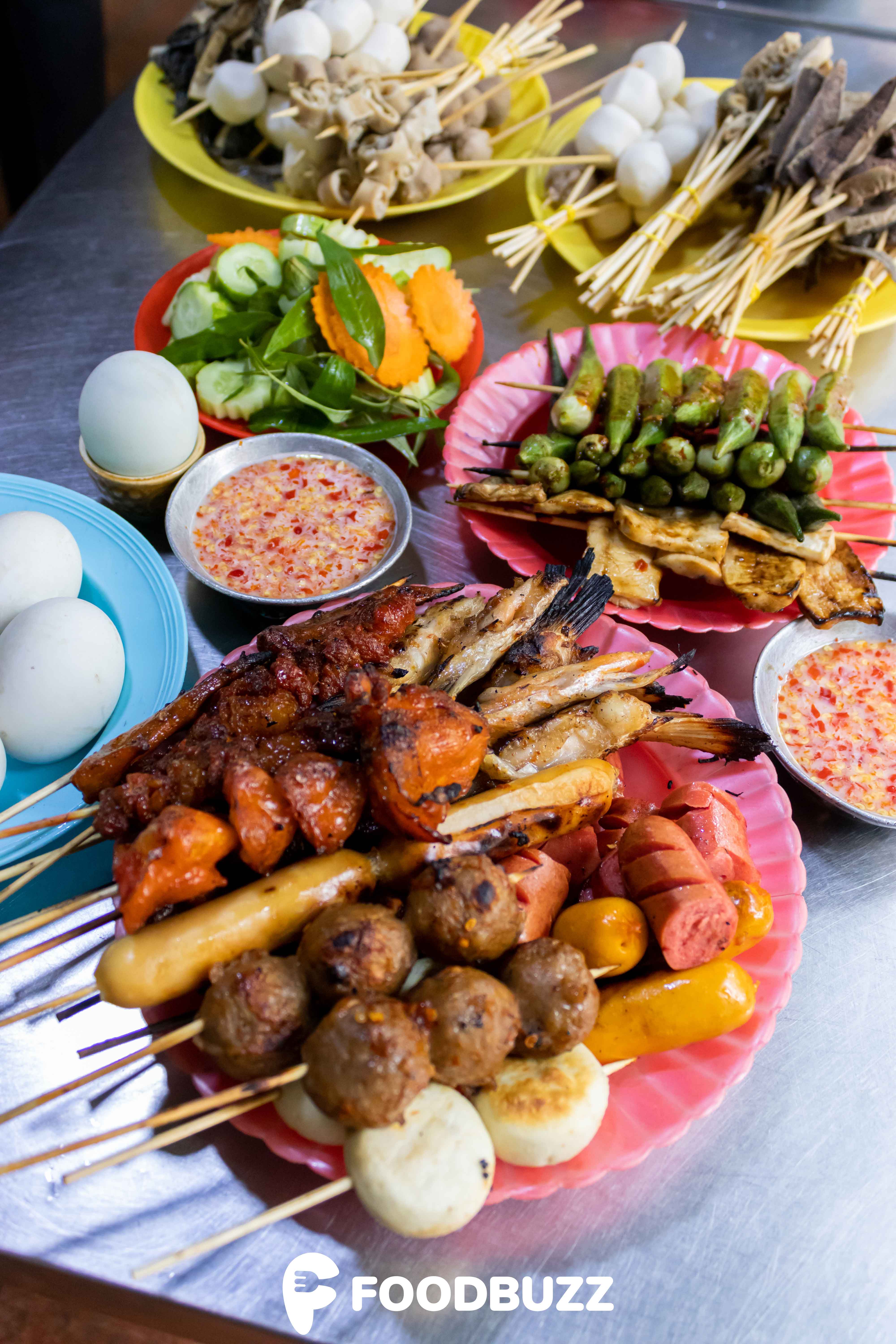 Tuol Sangke Meat Skewers has dishes such as: boiled meat, boiled meatballs, boiled pork intestine, grilled meat and various kinds of grilled vegetables.