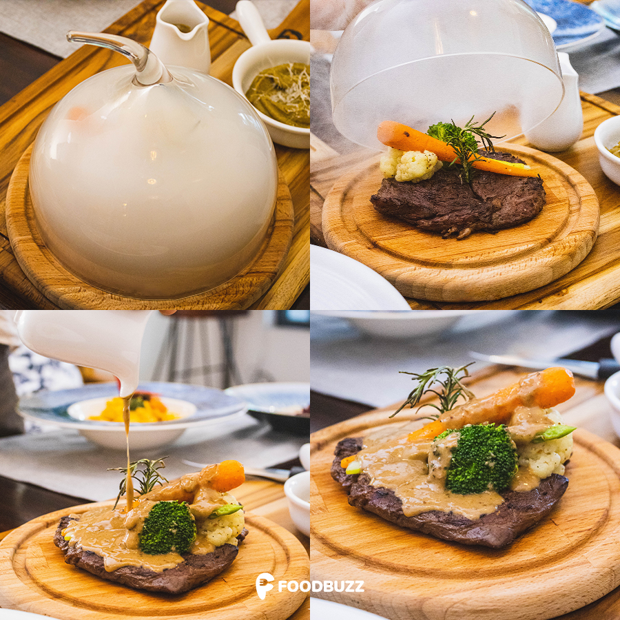 ភោជនីយដ្ឋាននេះផ្តល់នូវមុខម្ហូបតាមលំដាប់ដែលមានម្ហូបបុរាណៗរបស់បារាំងជាច្រើនមុខលាយជាមួយនឹងភាពទាន់សម័យផងដែរ។ មិនតែប៉ុណ្ណោះ មុឺនុយនៅខាងគាត់ក៏មានផ្លាស់ប្តូរតាមរដូវកាលដែរ ដើម្បីបង្ហាញគ្រឿងផ្សំថ្មីៗរបស់ហាង។ មុខម្ហូបសំខាន់ៗមួយចំនួនមានដូចជា សាច់ទាប្រឡាក់ជាមួយប្រេងផ្សិត Truffle ខ្មៅ សាច់ចៀមអាំងស្រោចជាមួយទឹក rosemary និងសូកូឡា soufflé ជាមួយការ៉េមវ៉ានីឡា។