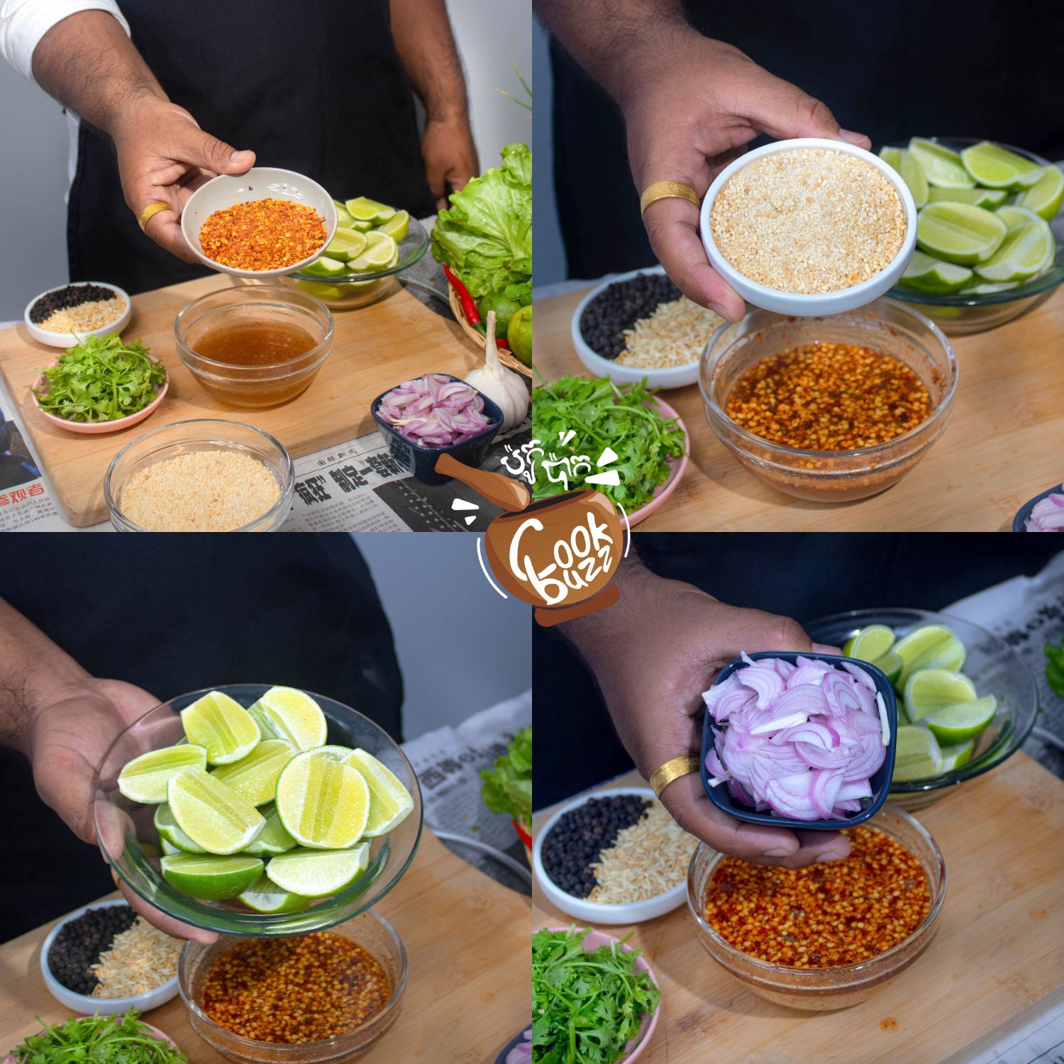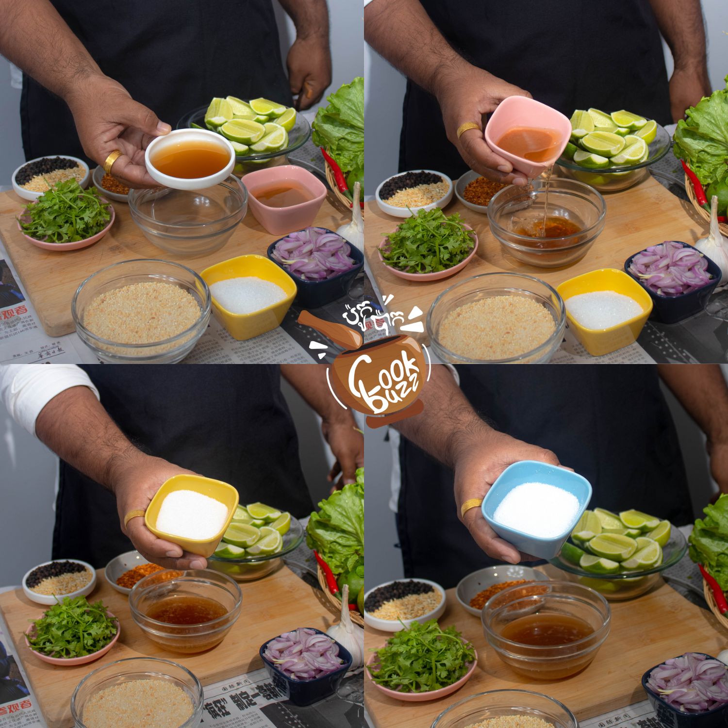 3. ផ្សំគ្រឿងទឹកជ្រលក់ពិសេសមានដូចជា ទឹកត្រី ទឹកអំពិលទុំ ស្ករស អំបិលបន្តិច ម្ទេសម៉ត់ អង្ករលីង ក្រូចឆ្មា ខ្ទឹមក្រហម និង ជីវ៉ាន់ស៊ុយ កូរឲសព្វល្អជាស្រេច! អាចថែមថយតាមគ្រឿងតាមចំណង់ចំណូលចិត្តបាន។