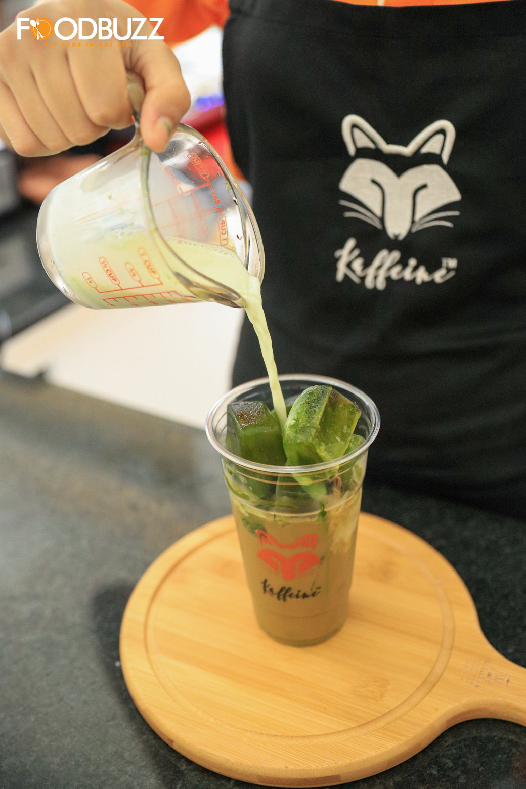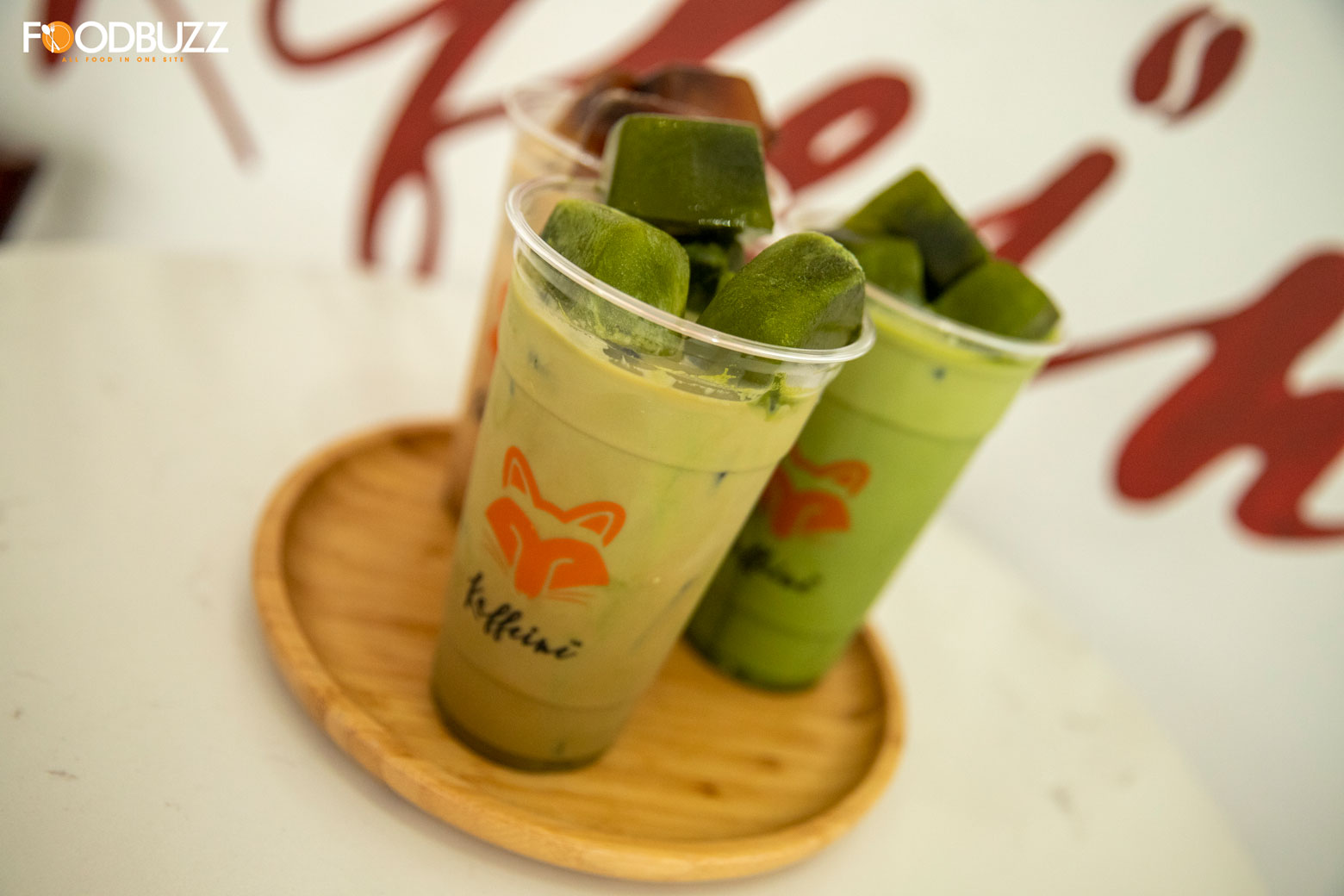 តែមូលហេតុចម្បងដែល Foodbuzz ណែនាំឱ្យទៅហាង Kaffeine គឺដោយសារភេសជ្ជៈឆ្ងាញ់និងតម្លៃសមរម្យ ជាពិសេសគឺភេសជ្ជៈ Iced Cube Series បីប្រចាំហាងដែលយកដុំទឹកកកមានរសជាតិមកប្រើជំនួសទឹកកកធម្មតា យ៉ាងគួរឱ្យចាប់អារម្មណ៍ព្រោះមិនដែលឃើញគេយកទឹកកកដែលមានរសជាតិស្រាប់អញ្ចឹងទេ! ពេលបានដាក់ទឹកកកនេះហើយ ទោះបីទុកយូរយ៉ាងណាក៏ភេសជ្ជៈមិនសាបញ៉ាំលែងឆ្ងាញ់ដែរ។ ភេសជ្ជៈនេះធ្វើឡើងយ៉ាងពិសេសសម្រាប់អតិថិជនដែលតែងខ្ចប់កាហ្វេយកទៅរៀនឬធ្វើការរាល់ព្រឹក និងសម្រាប់អ្នកដែលញ៉ាំយឺត បឺតមិនទាន់បានប៉ុន្នានផងក៏រលាយទឹកកកអស់!