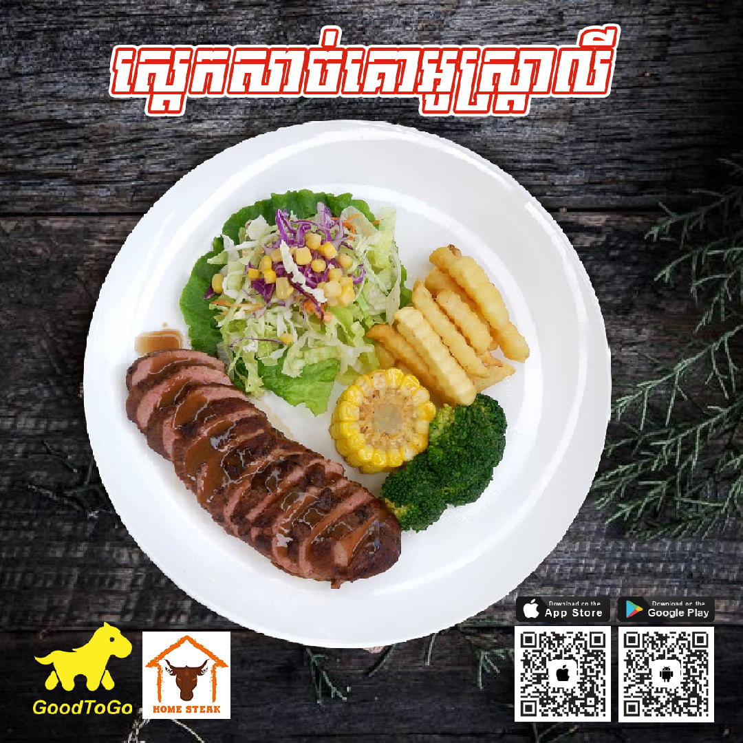 តោះឥឡូវមកស្គាល់ហាង HOME STEAK របស់ស្រីណុចទាំងអស់គ្នា! គ្រាន់តែឃើញឈ្មោះក៏អាចទាយថាម្ហូបពិសេសនៅទីនេះគឺជាអ្វីដែរ មែនអត់? នៅទីនេះមាន ស្តេក ដ៏ឆ្ងាញ់ ដែលមានជម្រើសសាច់យ៉ាងច្រើនដូចជា សាច់គោ សាច់មាន់ សាច់ទា សាច់ជ្រូក និង សាច់ត្រីដូរីទៀតផង!