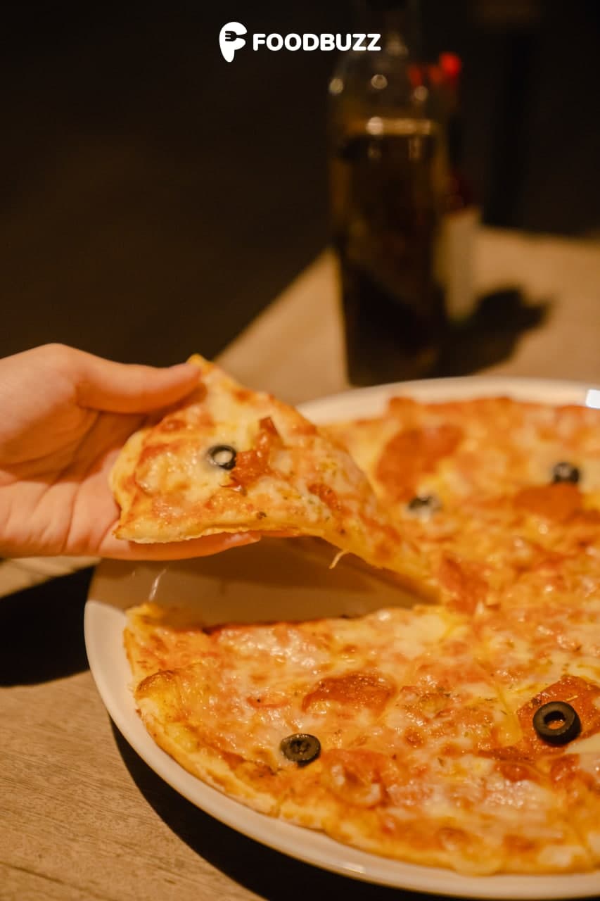 ទន្ទឹមជាមួយភេសជ្ជៈជាច្រើនមុខ ហាងនេះក៏មានលក់ម្ហូបបែបអាសុី និងអុឺរ៉ុបច្រើនមុខទៀត។ ពួកយើងបានញ៉ាំភីហ្សា Pepperoni ឆ្ងាញ់ជាលក្ខណៈទូទៅ។