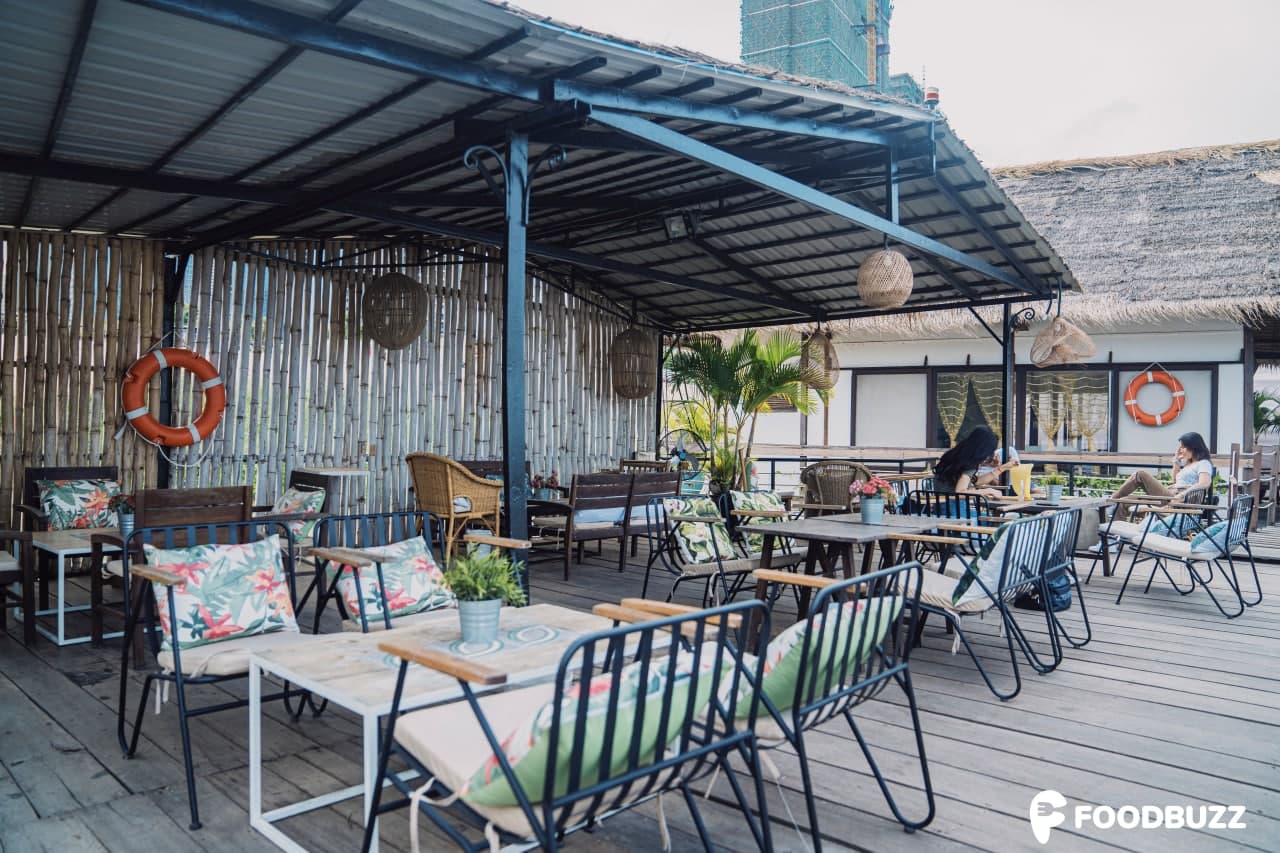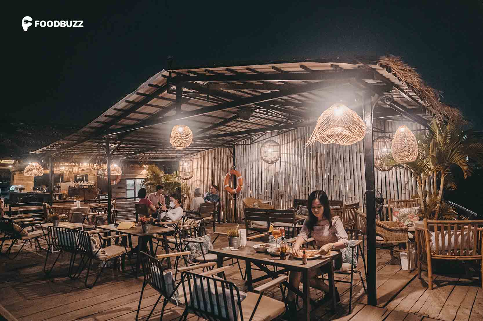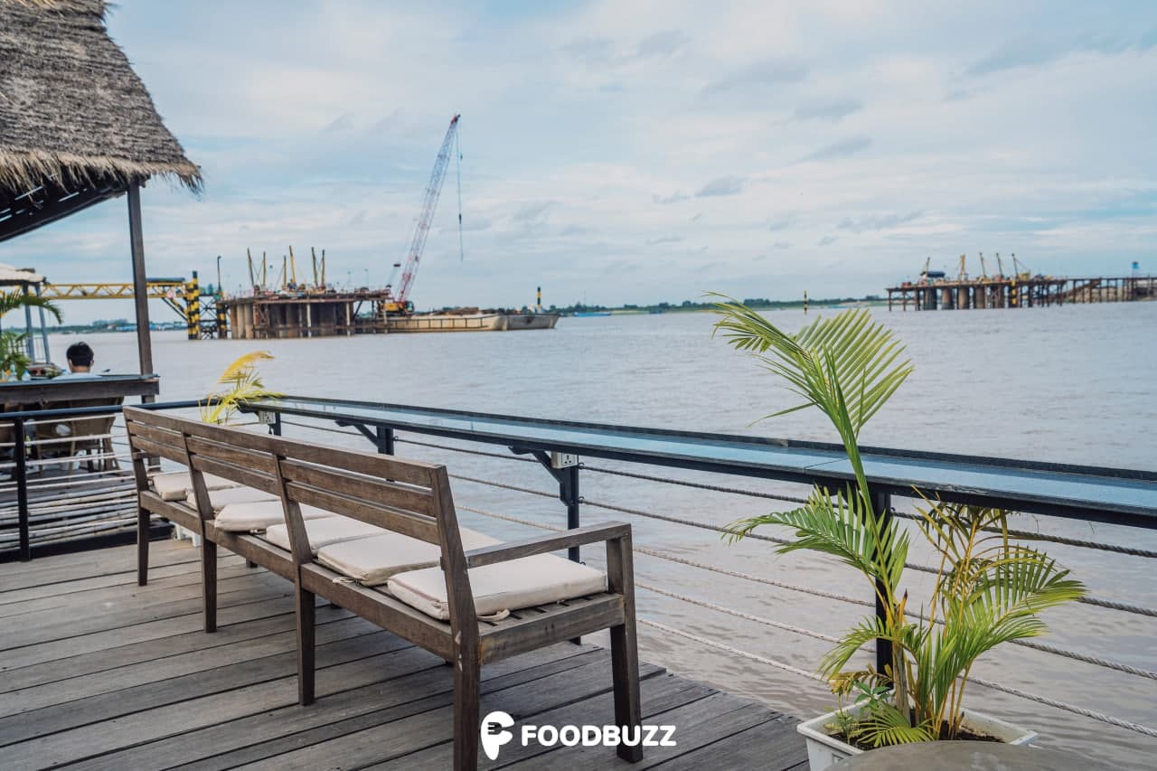 កន្លែងនេះស្រឡះល្អ ដូច្នេះហើយអ្នកទៅអាចអង្គុយក្រេបភេសជ្ជៈ ញ៉ាំអីជាមួយខ្យល់ទន្លេបក់មកល្វិចៗប៉ះខ្លួន។ ក្រុម FoodBuzz របស់យើងពិតជាចូលចិត្តបរិយាកាសនេះមែនទែន ប៉ុន្តែរៀងមានសម្លេងរំខានបន្តិចពីការដ្ឋានសំណង់ស្ពាននិងសាឡាងឆ្លងទៅមក ណាមួយពេលនោះចម្រៀងចាក់រៀងឮពេក។