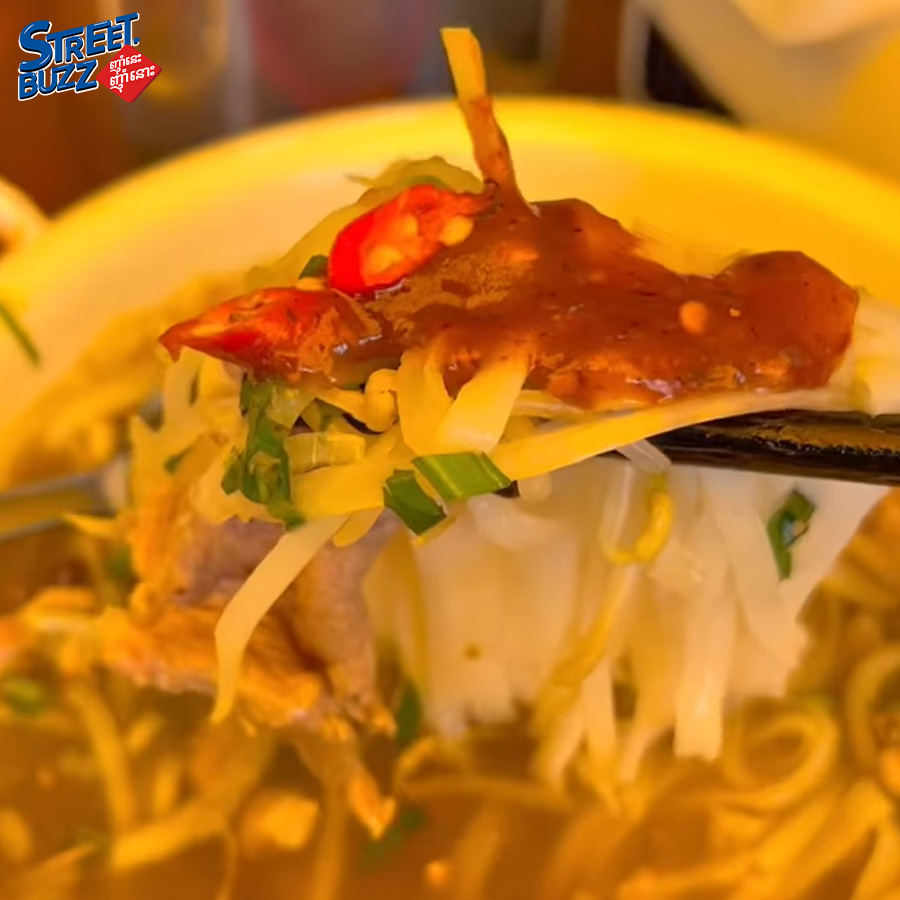 ហាងរបស់គាត់គឺមិនធំអីទេ តែម៉ូយគាត់វិញគឺមិនតិចឡើយ ហាងគាត់ចេញមកតូច ហើយមិនប្រេនអីមែនតែខ្លឹម ចេញមកដូចហាងលំដាប់ចឹង។ តូបបើកមិនទាន់ទេ ម៉ូយៗចូលឡើងពេញ និយាយទៅលក់ដាច់សាហាវ ហើយកន្លែងគាត់នេះពេញនិយមបំផុតចំពោះ សិស្សៗ មិនថាសិស្សសាកល ឬសិស្សវិទ្យាល័យអីទេ ជាពិសេសឲ្យតែដល់ម៉ោងបាយទៅម្ដងណាក៏ណែនដែរ។