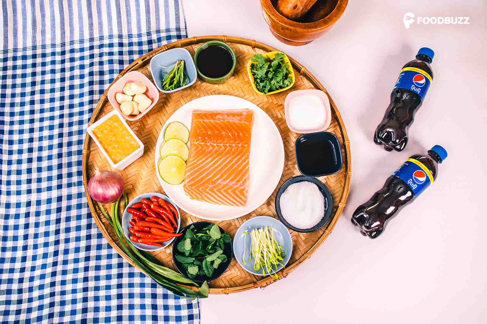 រួចរាល់ហើយ! ត្រីសាលម៉ុនរសជាតិប្លែកចម្លែករសនិយម! បើធ្វើមួយមុខនេះញ៉ាំ កុំភ្លេចទិញ Pepsi មកញ៉ាំជាមួយផង។ ហឹរៗ ហើយបានរសជាតិ Pepsi ត្រជាក់ៗ ដឹងតែញ៉ាំមិនចង់ឈប់តែម្ដង៕