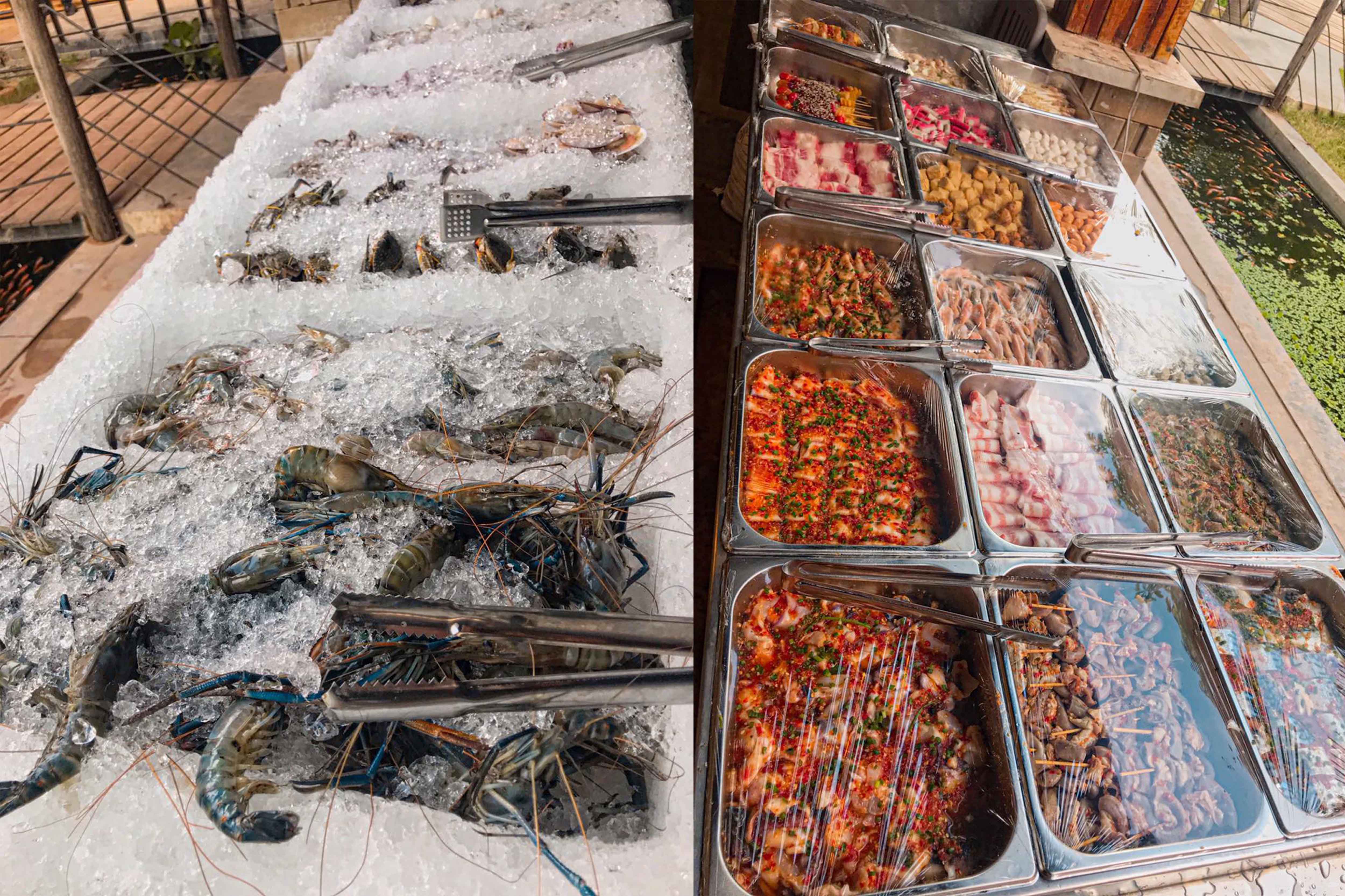 មានទាំងសាច់អាំងទឹកកាពិ គ្រឿងសមុទ្រគ្រប់ប្រភេទ និងម្ហូបក្លែមជាច្រើនមុខ។